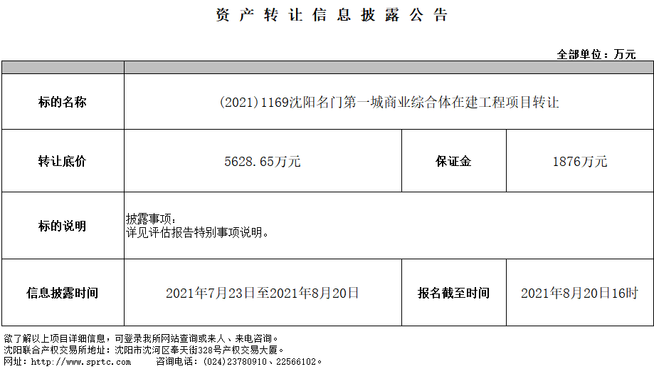 沈陽名門第一城商業(yè)綜合體在建工程項(xiàng)目轉(zhuǎn)讓
