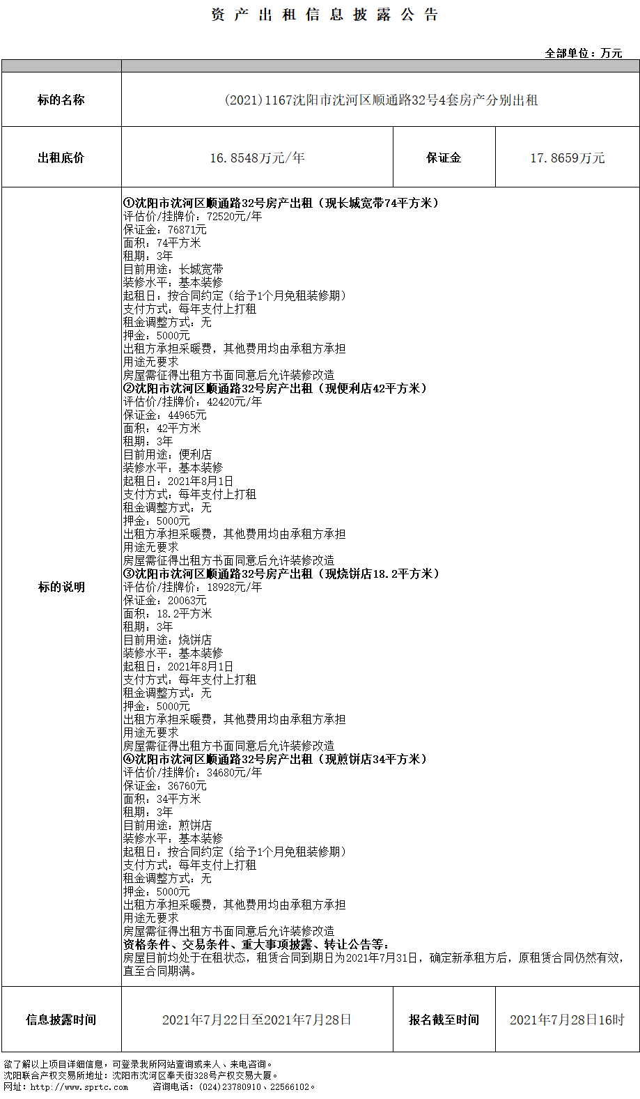 沈陽(yáng)市沈河區(qū)順通路32號(hào)房產(chǎn)出租(現(xiàn)長(zhǎng)城寬帶74平方米)