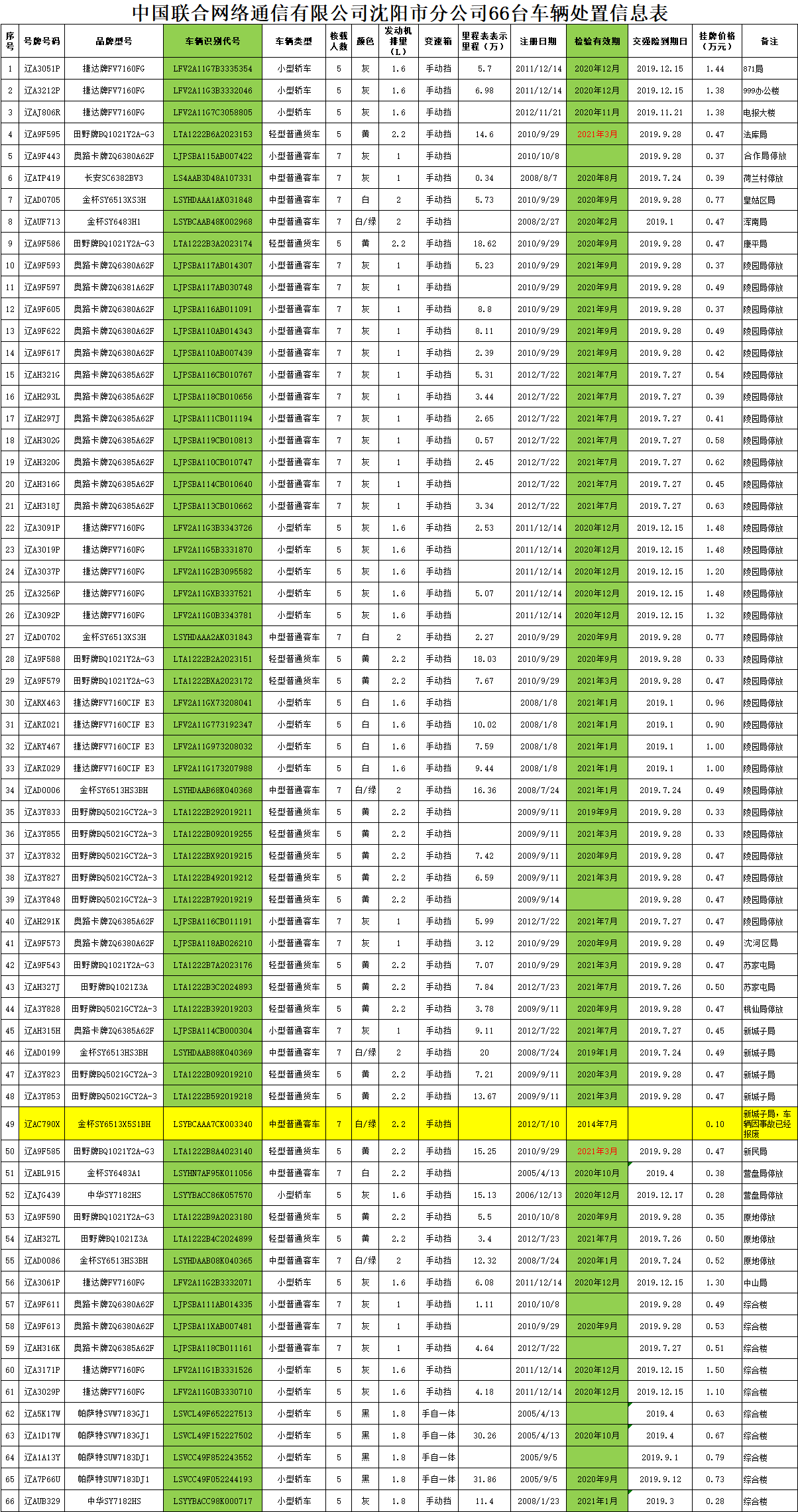 聯(lián)通沈陽(yáng)公司47、遼A3Y823