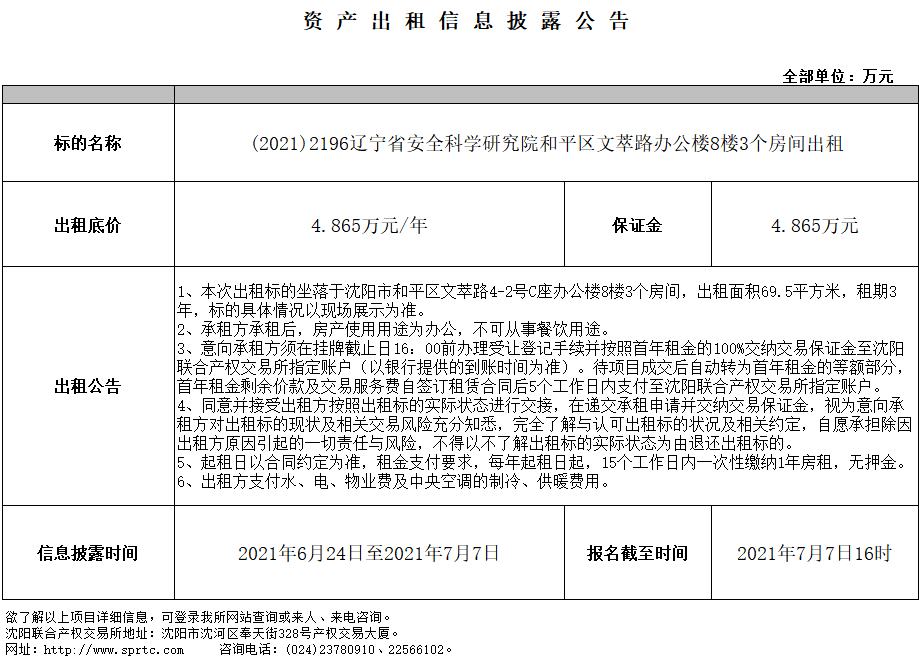 遼寧省安全科學(xué)研究院和平區(qū)文萃路辦公樓8樓3個(gè)房間出租