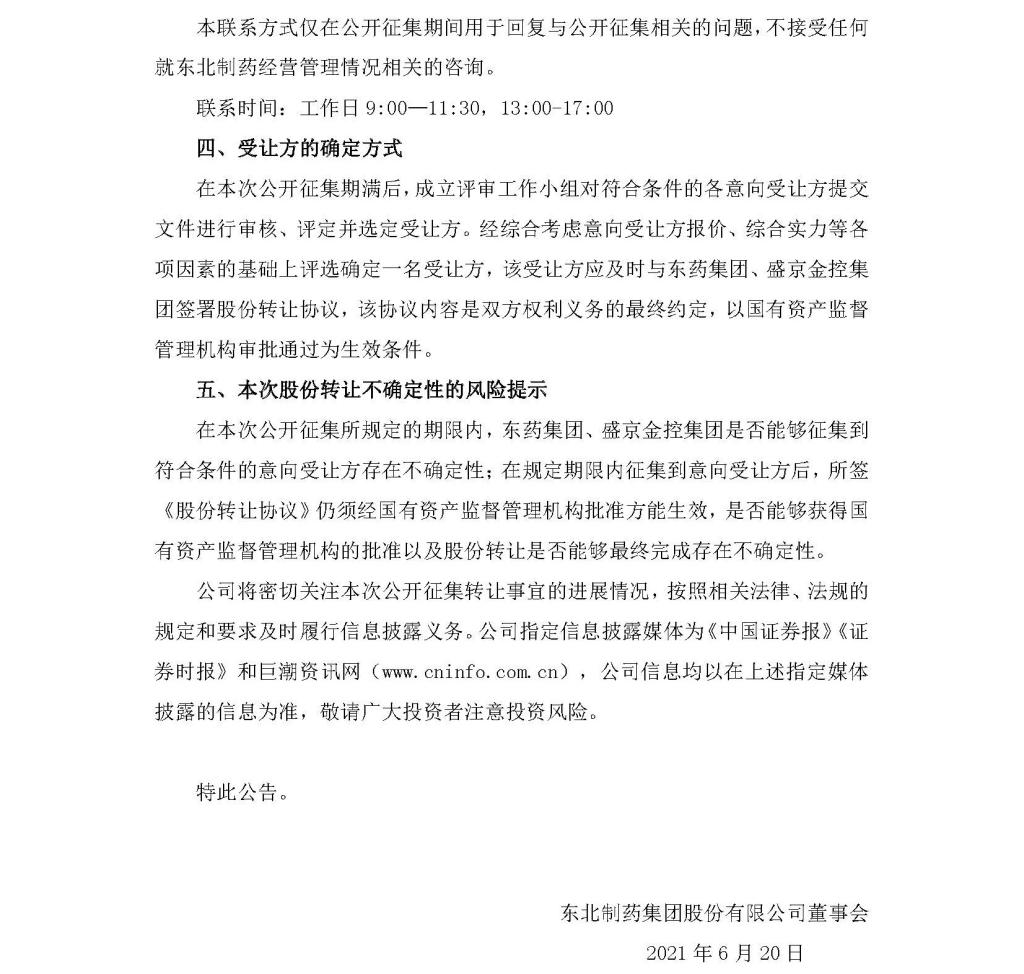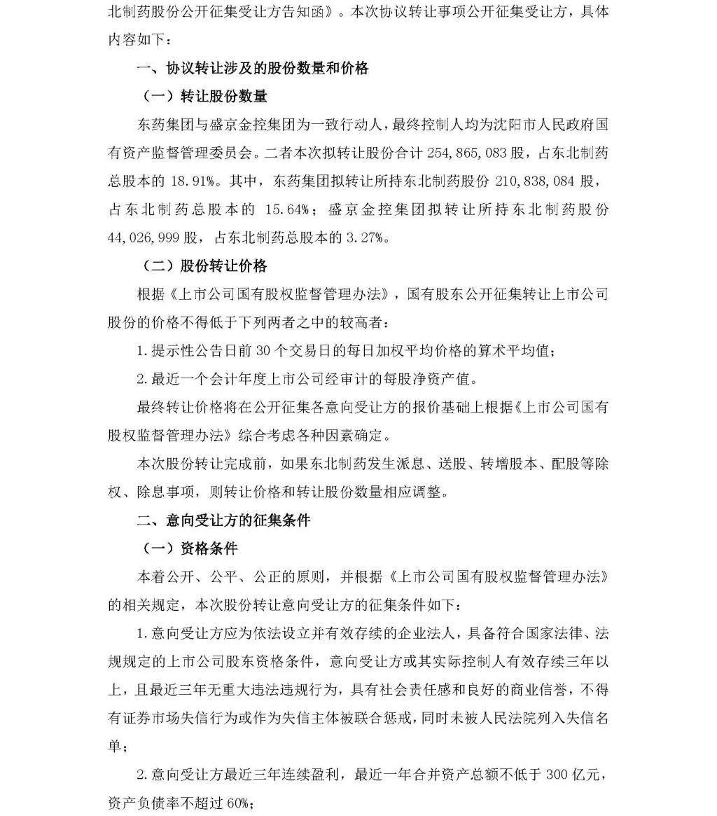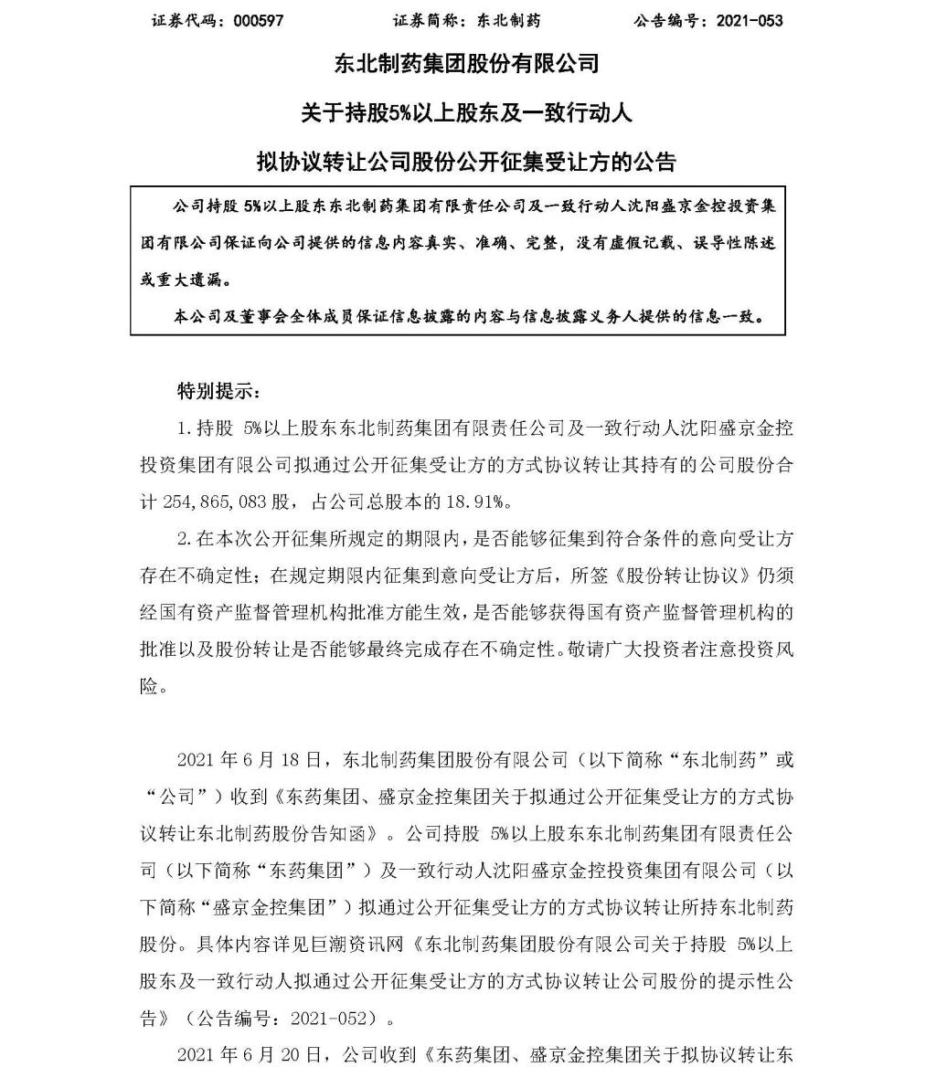 東北制藥集團(tuán)股份有限公司關(guān)于持股5%以上股東及一致行動(dòng)人擬協(xié)議轉(zhuǎn)讓公司股份公開征集受讓方的公告