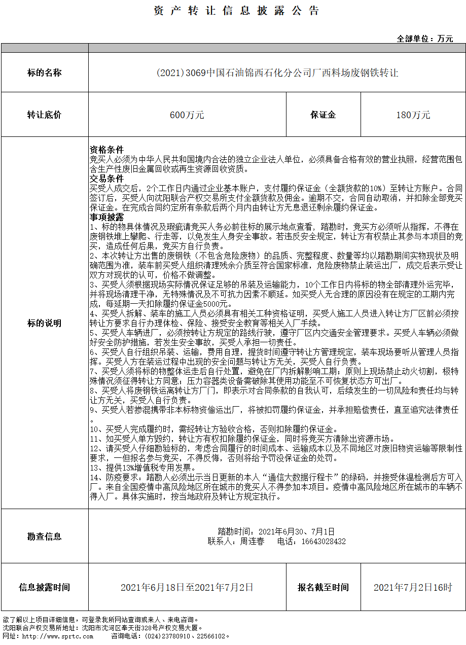中國石油錦西石化分公司廠西料場廢鋼鐵轉(zhuǎn)讓