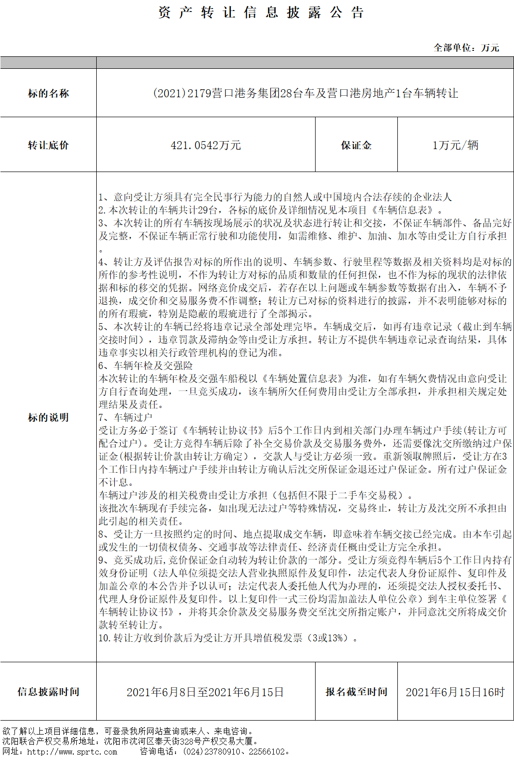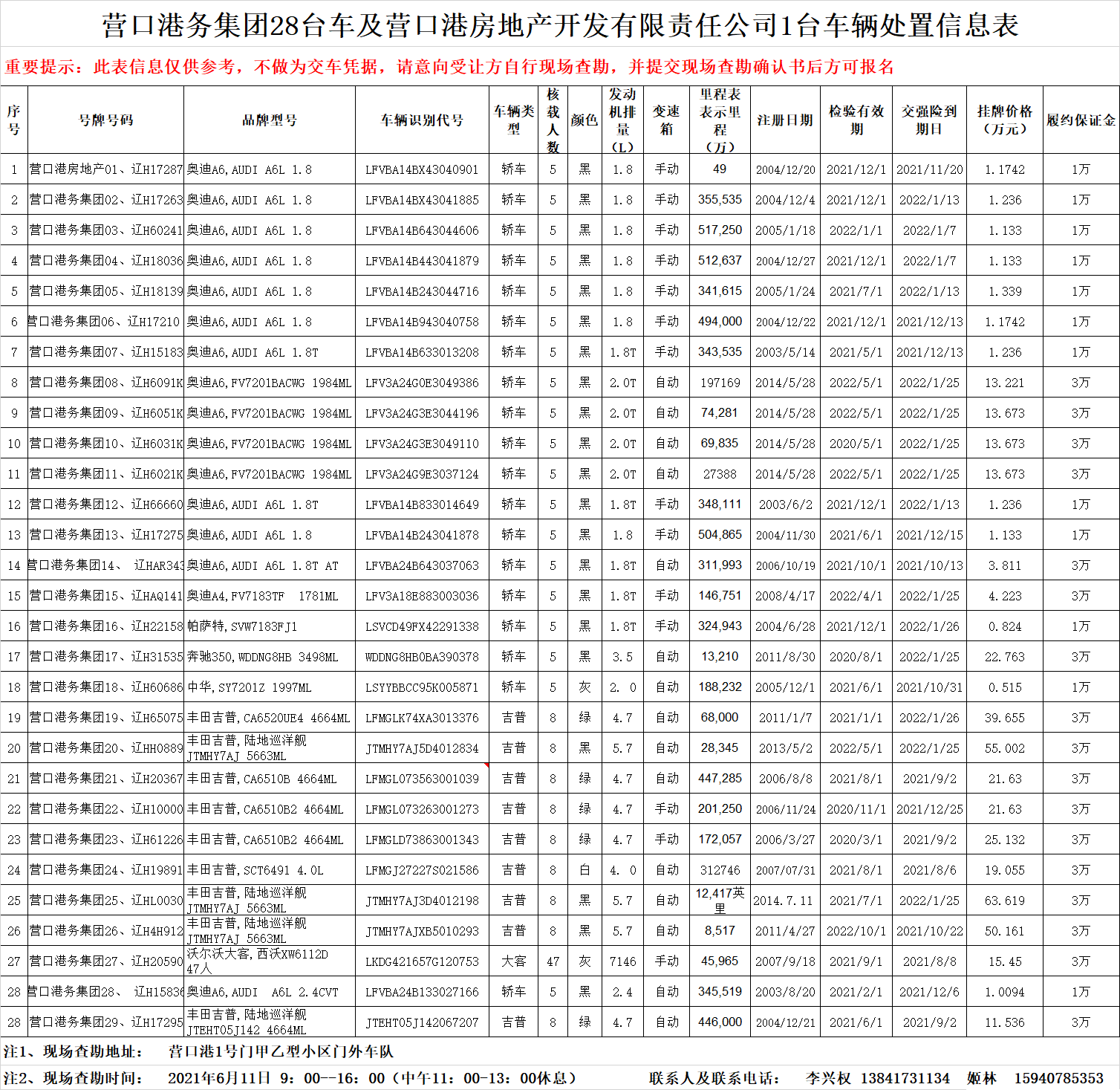 重要提示:此表信息僅供參考,不做為交車憑據(jù),請意向受讓方自行現(xiàn)場查勘,并提交現(xiàn)場查勘確認書后方可報名。