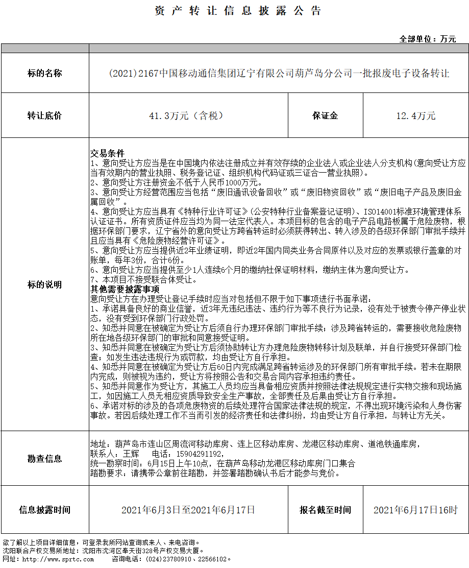 中國(guó)移動(dòng)通信集團(tuán)遼寧有限公司葫蘆島分公司一批報(bào)廢電子設(shè)備轉(zhuǎn)讓