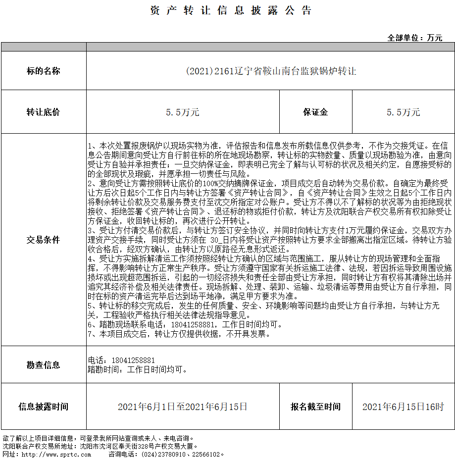 遼寧省鞍山南臺監(jiān)獄常壓熱水煤氣鍋爐和熱水鍋爐轉(zhuǎn)讓