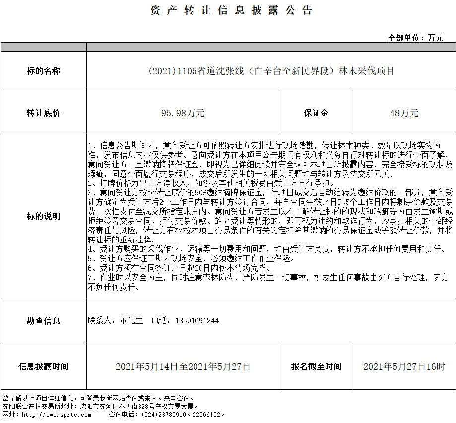 (2021)1105省道沈張線(白辛臺至新民界段)林木采伐項目