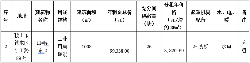 鞍鋼股份有限公司設(shè)備資材采購中心11號庫東2-11號出租