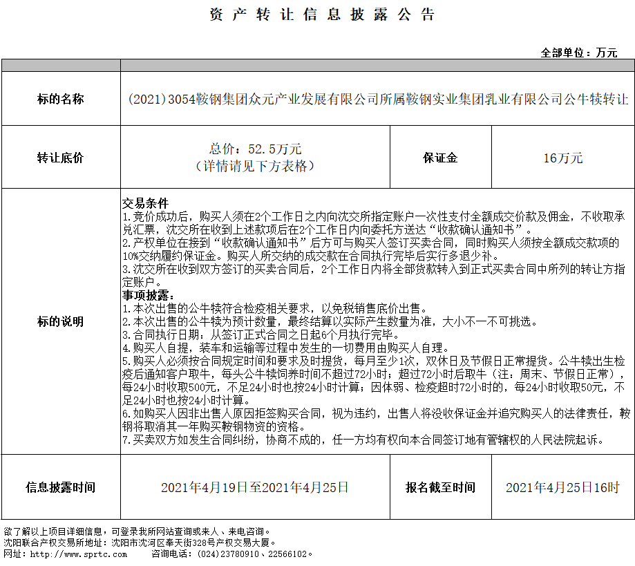 鞍鋼實(shí)業(yè)集團(tuán)乳業(yè)有限公司公牛犢轉(zhuǎn)讓