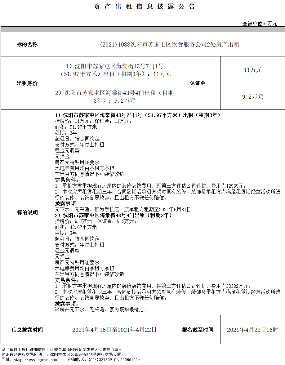 沈陽(yáng)市蘇家屯區(qū)海棠街43號(hào)7門1號(hào)(51.97平方米)出租(租期3年)