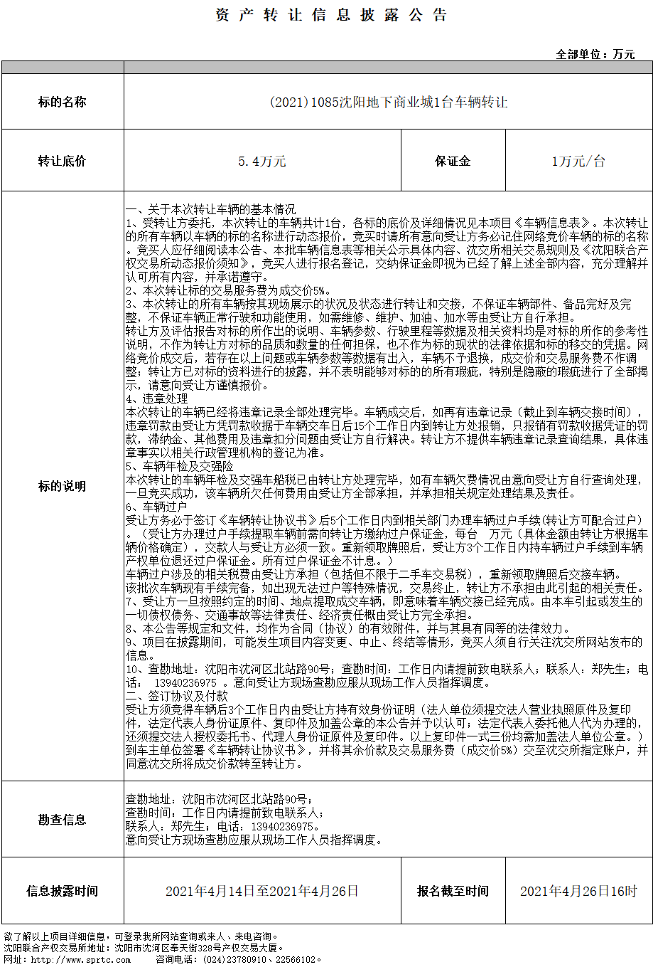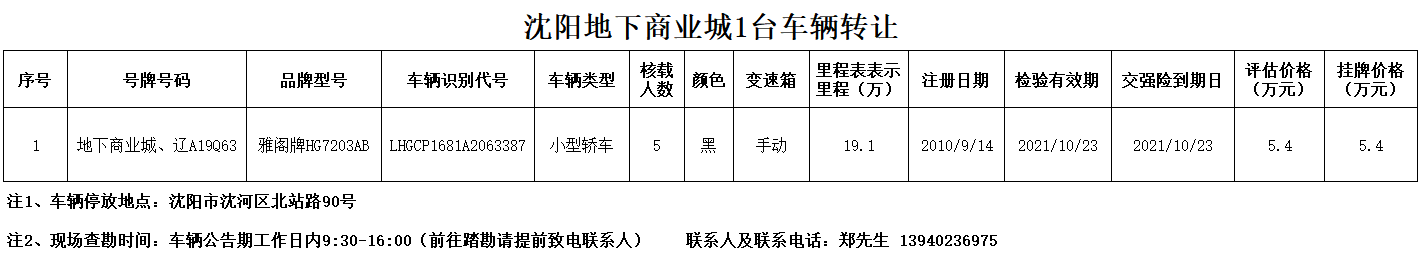 沈陽地下商業(yè)城1臺車輛轉(zhuǎn)讓