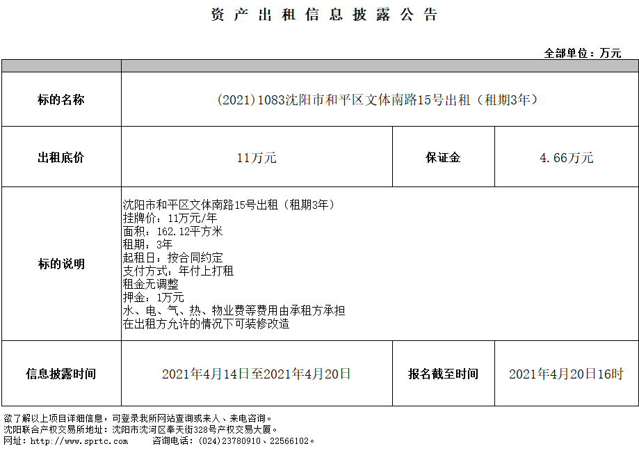 沈陽(yáng)市和平區(qū)文體南路15號(hào)出租(租期3年)