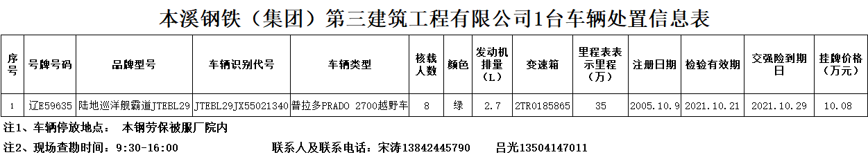 本溪鋼鐵(集團(tuán))第三建筑工程有限公司1臺(tái) 車輛轉(zhuǎn)讓