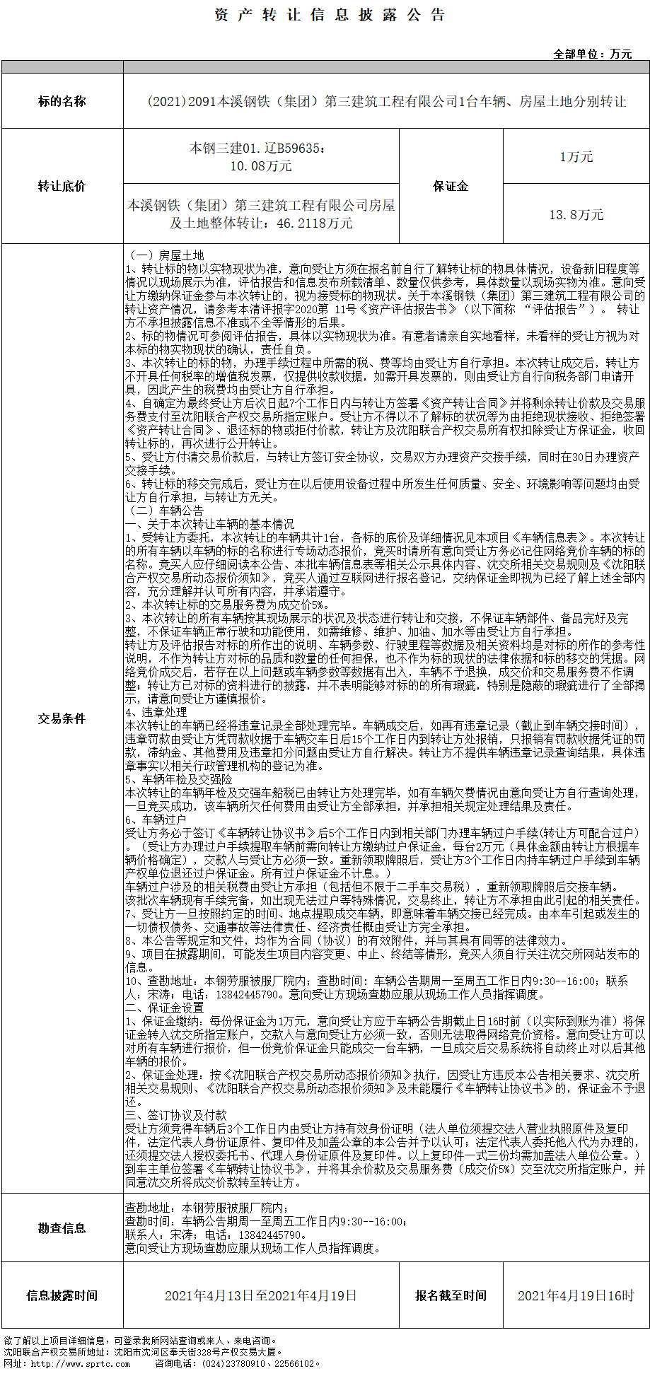 本溪鋼鐵(集團(tuán))第三建筑工程有限公司房屋及土地整體轉(zhuǎn)讓