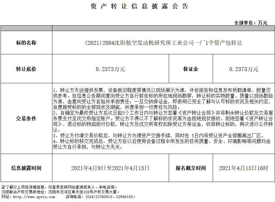 001航發(fā)工業(yè)公司一廠資產(chǎn)包(液壓升降機(jī)、液體噴砂機(jī)、臺鉆等3臺)轉(zhuǎn)讓