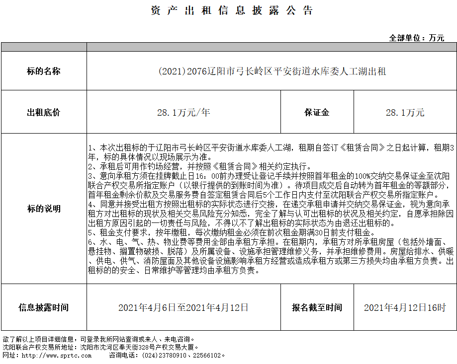 遼陽市弓長嶺區(qū)平安街道水庫委人工湖出租