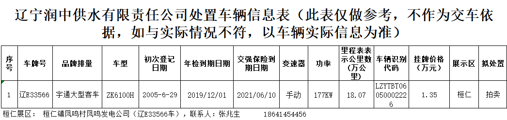 (2021)2073遼寧潤中供水有限責任公司1臺車輛轉(zhuǎn)讓