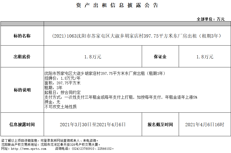 沈陽(yáng)市蘇家屯區(qū)大淑鄉(xiāng)胡家店村397.75平方米東廠房出租(租期3年)