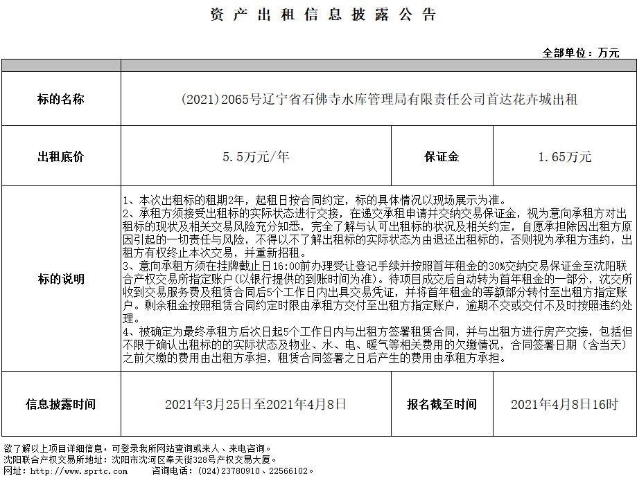 遼寧省石佛寺水庫(kù)管理局有限責(zé)任公司首達(dá)花卉城降價(jià)出租