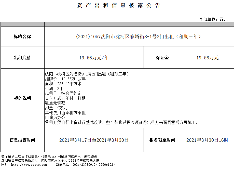沈陽(yáng)市沈河區(qū)彩塔街8-1號(hào)2門出租(租期三年)