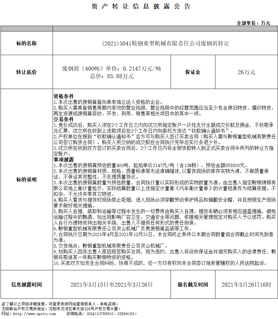 鞍鋼重型機械有限責(zé)任公司廢鋼屑轉(zhuǎn)讓