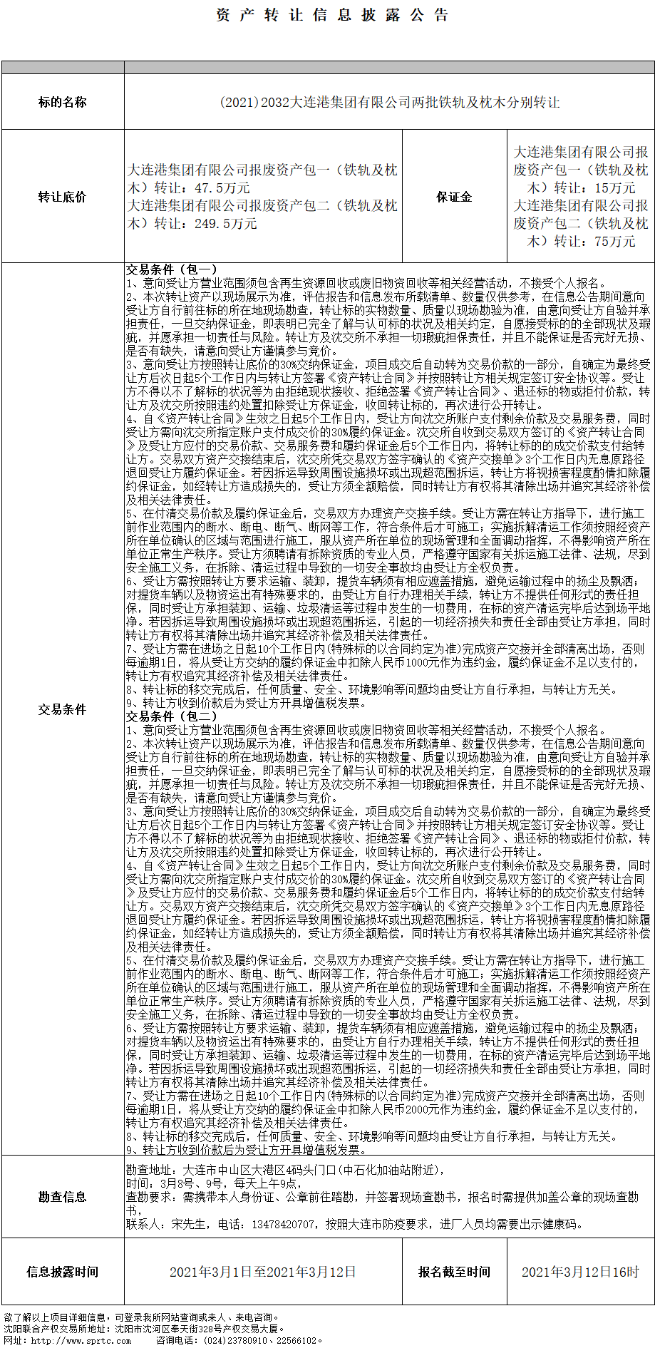 大連港集團(tuán)有限公司報(bào)廢資產(chǎn)包一(鐵軌及枕木)轉(zhuǎn)讓