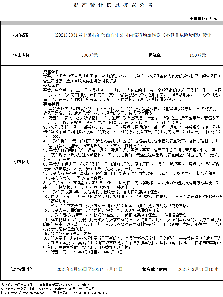 中國(guó)石油錦西石化公司丙烷料場(chǎng)廢鋼鐵(不包含危險(xiǎn)廢物)
