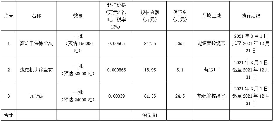 鞍鋼實業(yè)集團冶金資源再生利用分公司高爐干法除塵灰轉(zhuǎn)讓