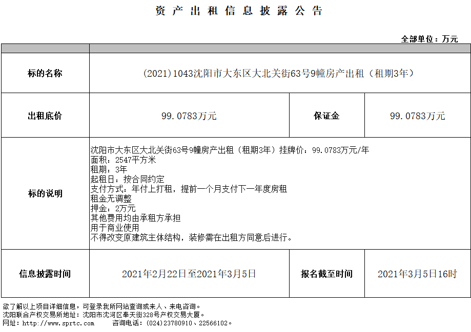 沈陽(yáng)市大東區(qū)大北關(guān)街63號(hào)9幢房產(chǎn)出租(租期3年)