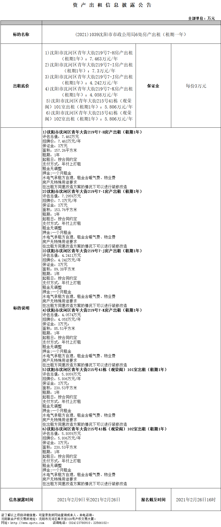 沈陽市沈河區(qū)青年大街219號7-K房產(chǎn)出租(租期1年)