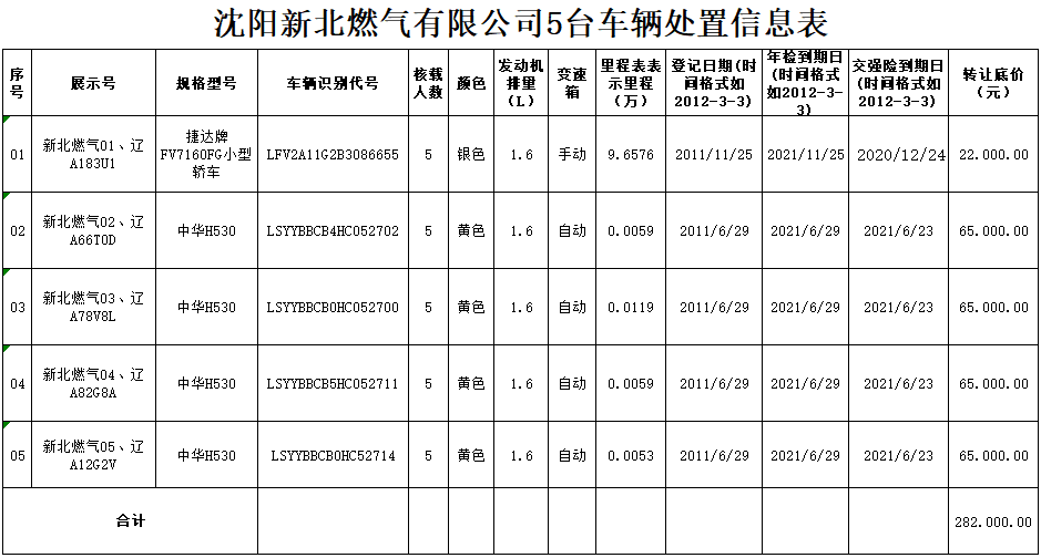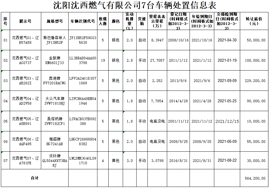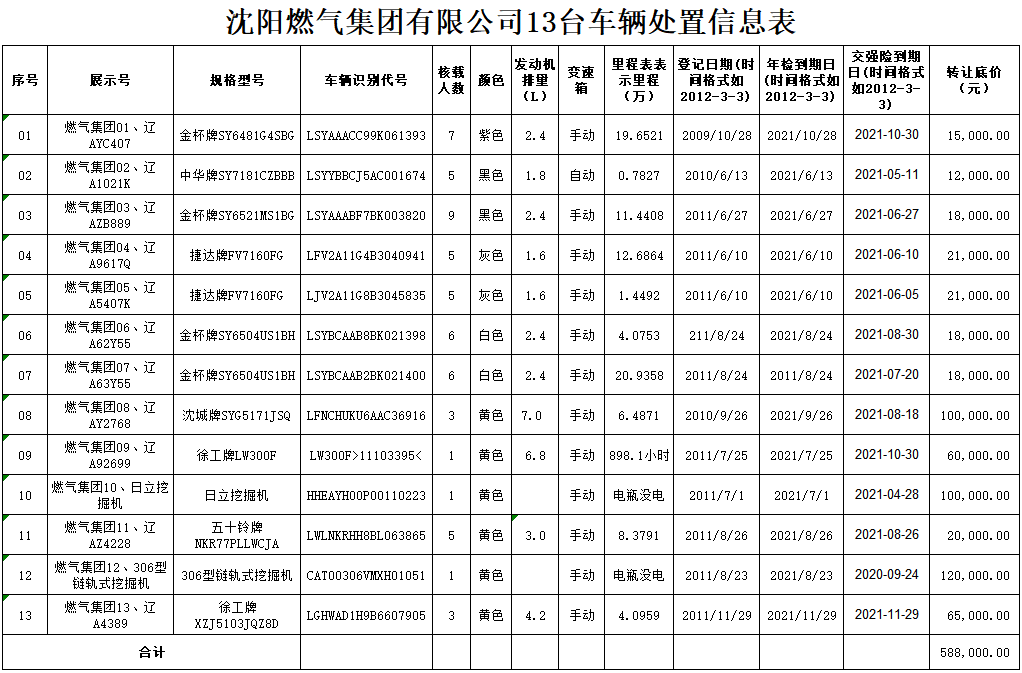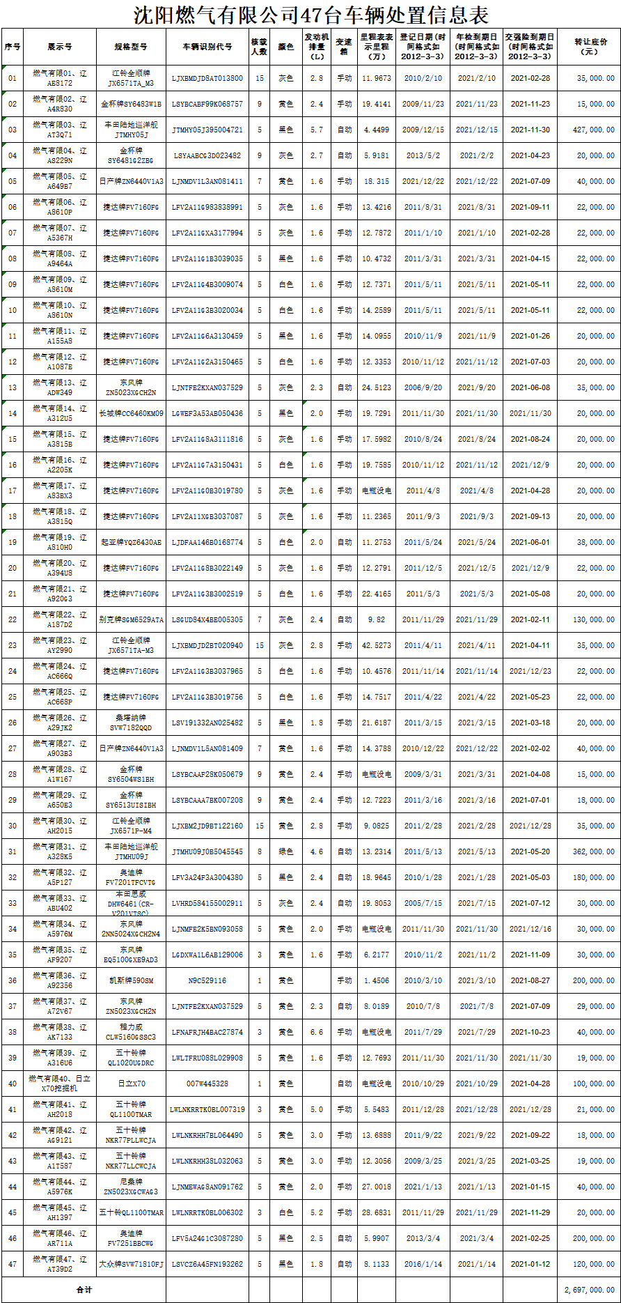 (2021)1012沈陽(yáng)燃?xì)饧瘓F(tuán)有限公司及所屬公司72臺(tái)車(chē)輛分別轉(zhuǎn)讓