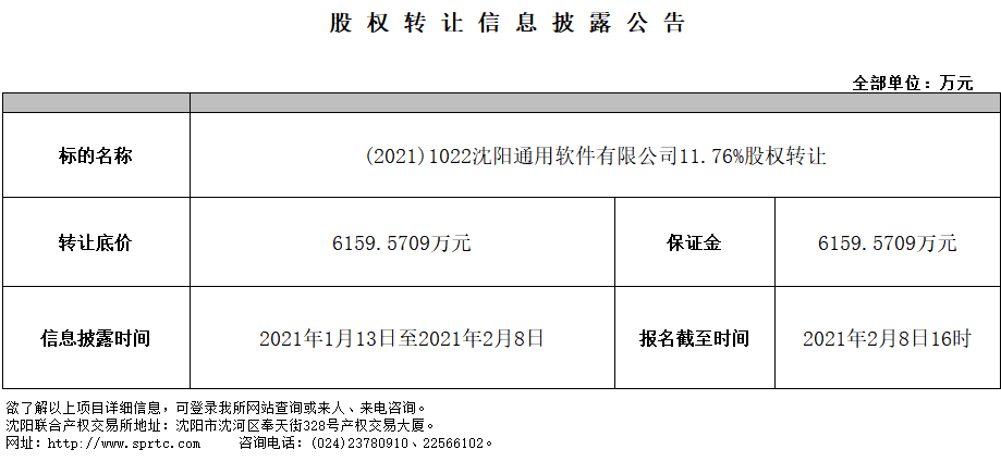 (2021)1022沈陽通用軟件有限公司11.76%股權轉讓