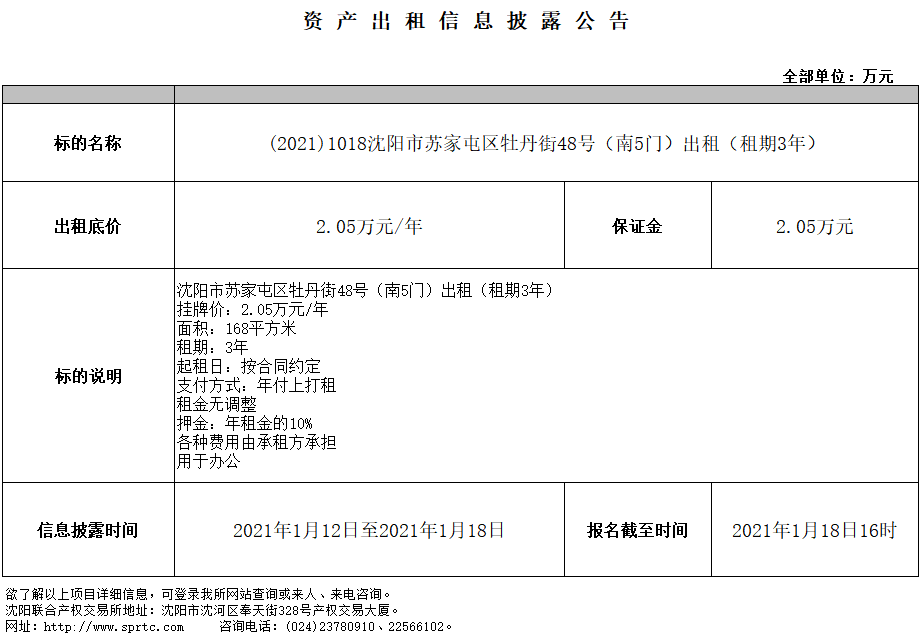 沈陽市蘇家屯區(qū)牡丹街48號(hào)(南5門)出租(租期3年)
