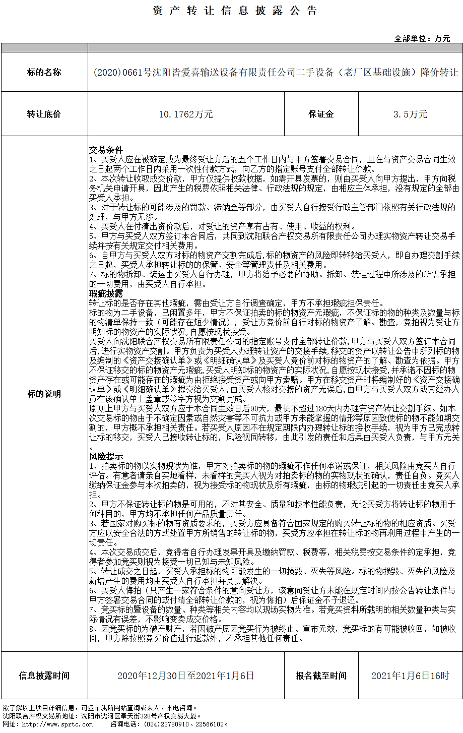 沈陽皆愛喜輸送設(shè)備有限責(zé)任公司二手設(shè)備轉(zhuǎn)讓(老廠區(qū)基礎(chǔ)設(shè)施)