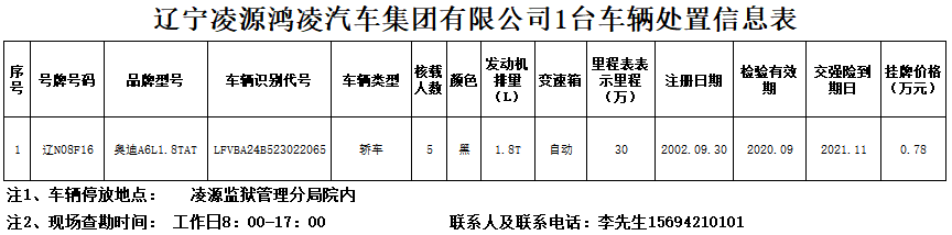 遼寧凌源鴻凌汽車集團公司1臺車輛第二次降價轉(zhuǎn)讓
