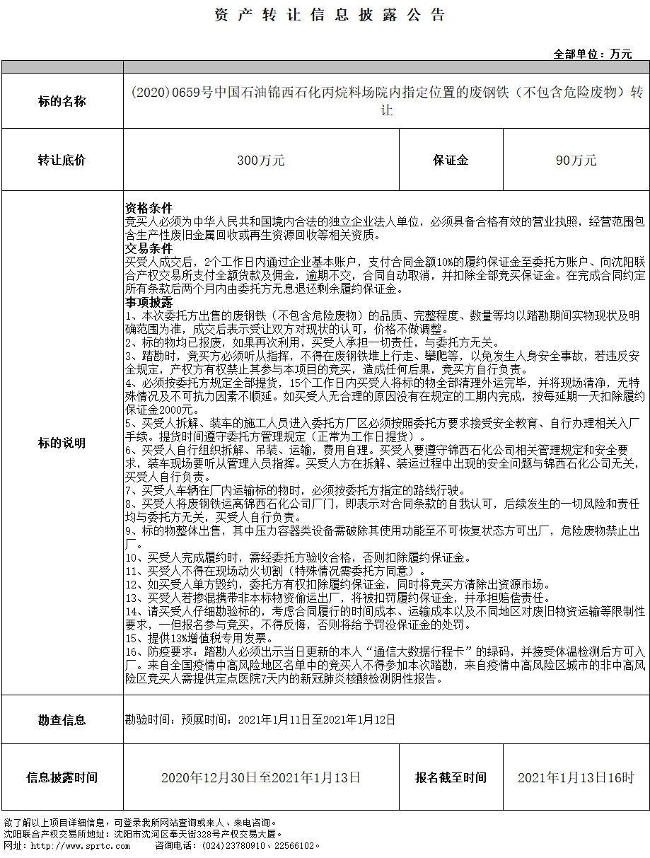 中國石油錦西石化丙烷料場院內(nèi)指定位置的廢鋼鐵(不包含危險廢物)轉(zhuǎn)讓