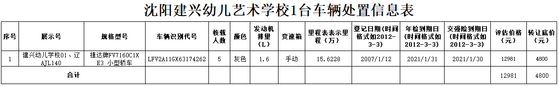 沈陽建興幼兒藝術(shù)學(xué)校1臺(tái)車輛轉(zhuǎn)讓