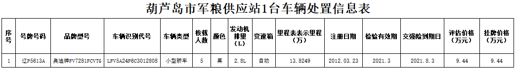 (2020)0626號葫蘆島市軍糧供應站1臺車輛轉讓