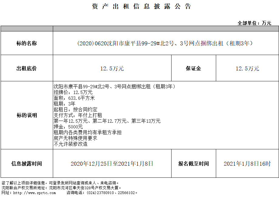 沈陽市康平縣99-29 北2號、3號網(wǎng)點捆綁出租(租期3年)