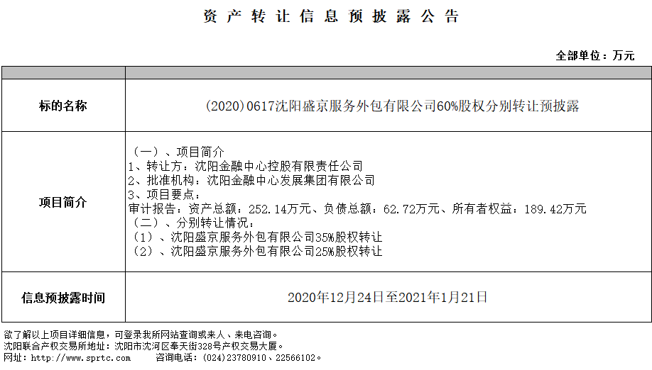 沈陽盛京服務(wù)外包有限公司25%股權(quán)轉(zhuǎn)讓