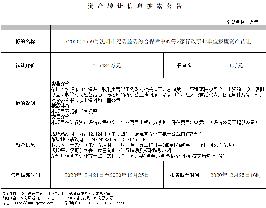 沈陽市紀委監(jiān)委綜合保障中心等2家行政事業(yè)單位報廢資產(chǎn)轉(zhuǎn)讓