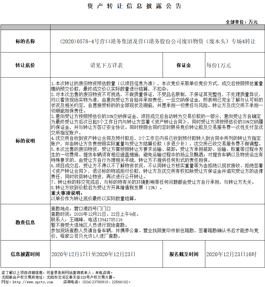 4-01、營口港股份公司一批廢木頭轉(zhuǎn)讓