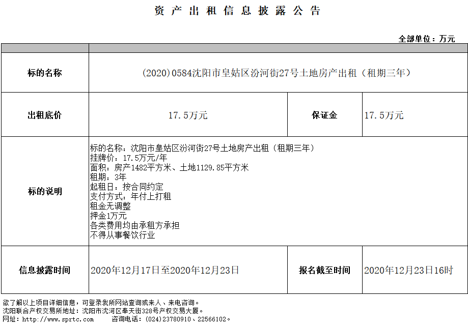 沈陽市皇姑區(qū)汾河街27號(hào)土地房產(chǎn)出租(租期三年)
