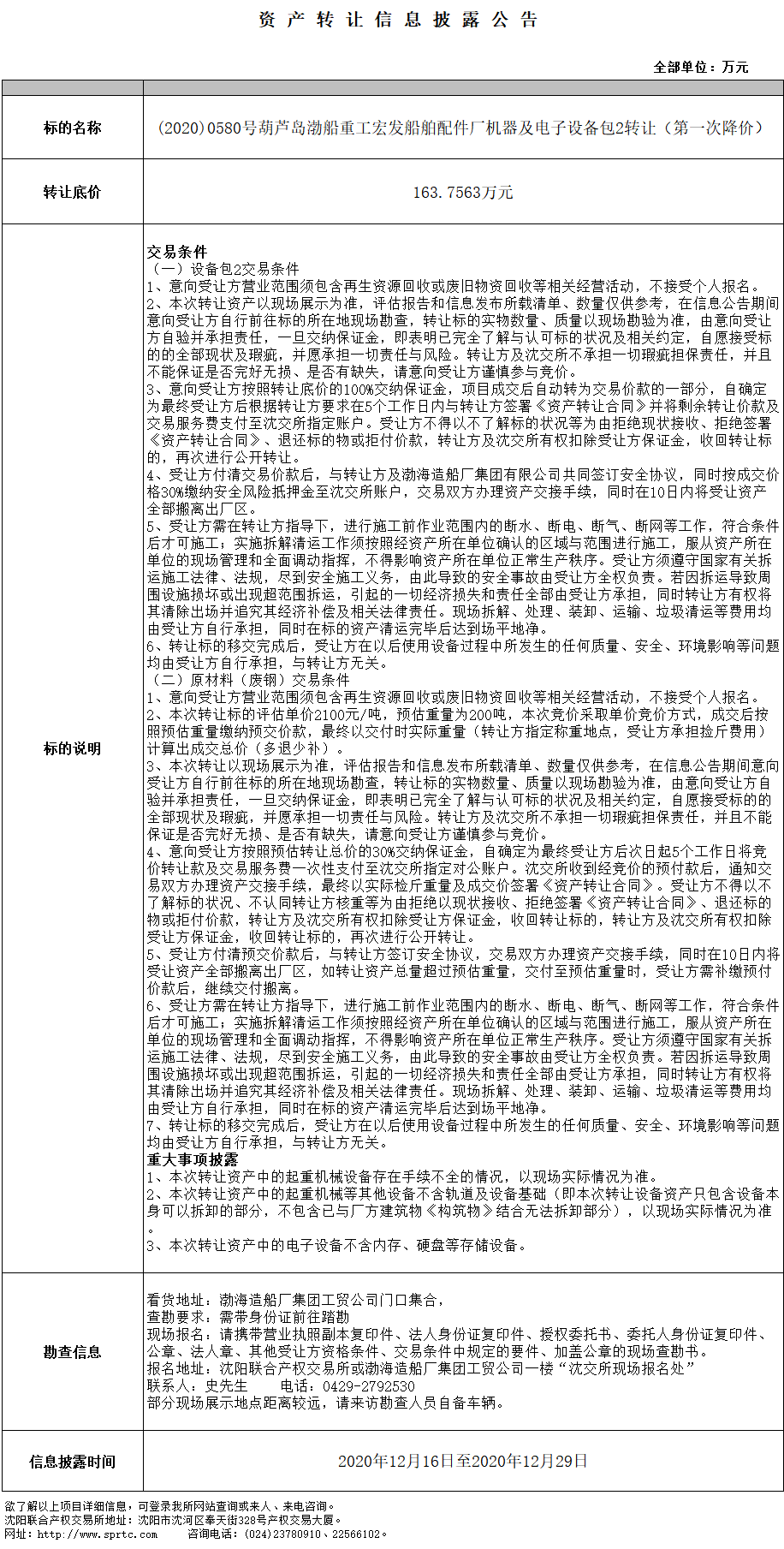 葫蘆島渤船重工宏發(fā)船舶配件廠機(jī)器及電子設(shè)備包2(第一次降價(jià))