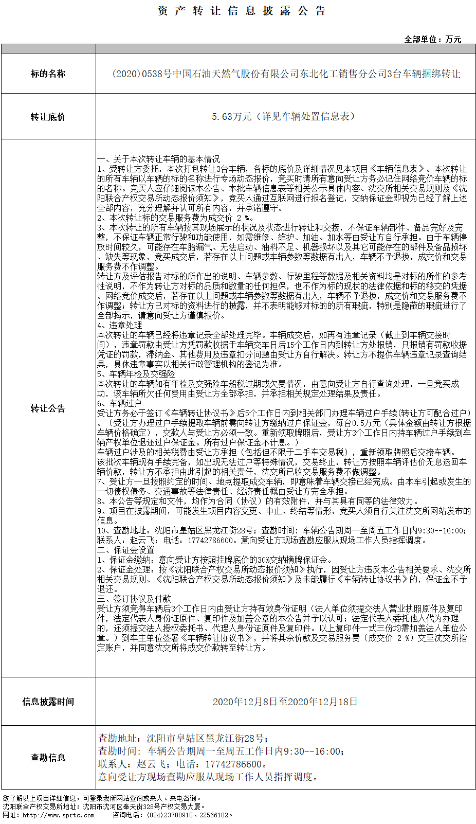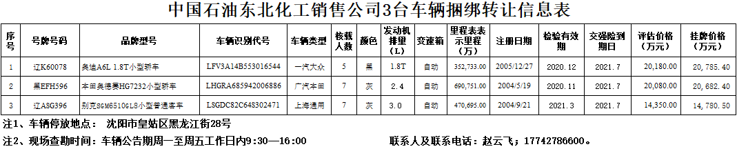 中國(guó)石油東北化工銷售分公司3臺(tái)車輛捆綁轉(zhuǎn)讓