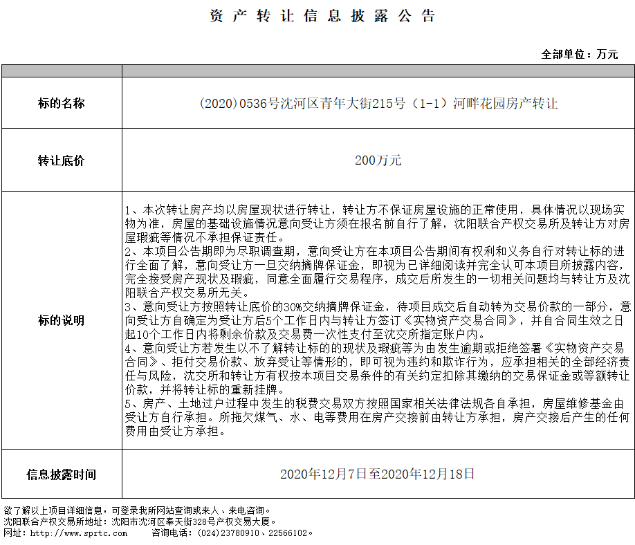 沈河區(qū)青年大街215號(hào)(1-1)河畔花園房產(chǎn)轉(zhuǎn)讓