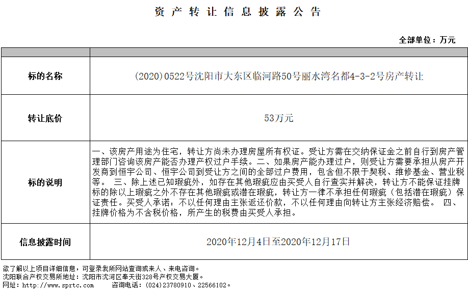 沈陽市大東區(qū)臨河路50號麗水灣名都4-3-2號房產(chǎn)轉(zhuǎn)讓