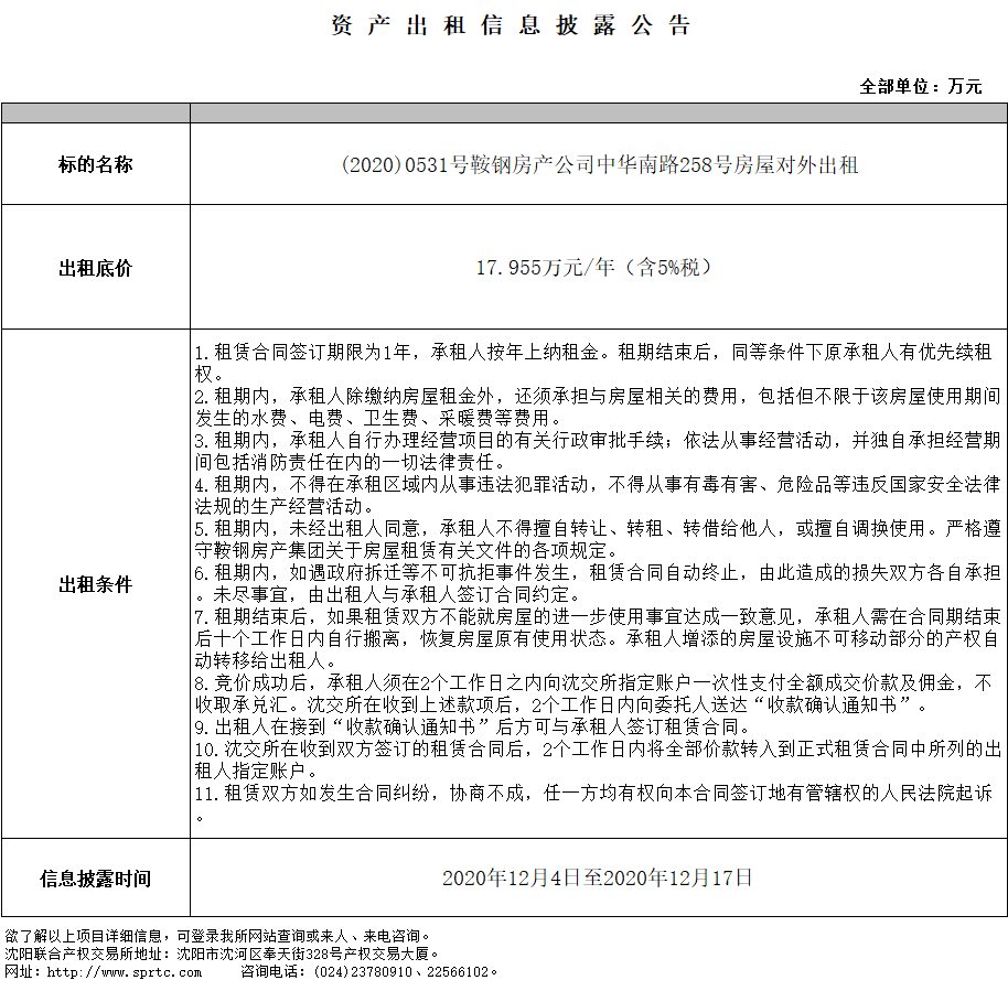 鞍鋼房地產(chǎn)開(kāi)發(fā)集團(tuán)有限公司中華南路258號(hào)房屋對(duì)外出租