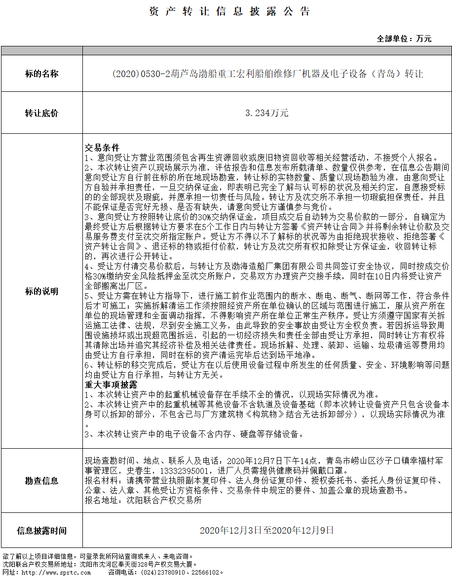 重工宏利船舶維修廠機器及電子設備(青島)轉(zhuǎn)讓