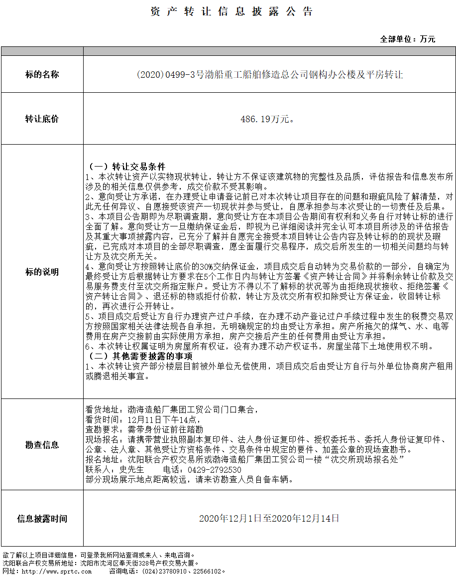渤船重工船舶修造總公司鋼構(gòu)辦公樓及平房轉(zhuǎn)讓