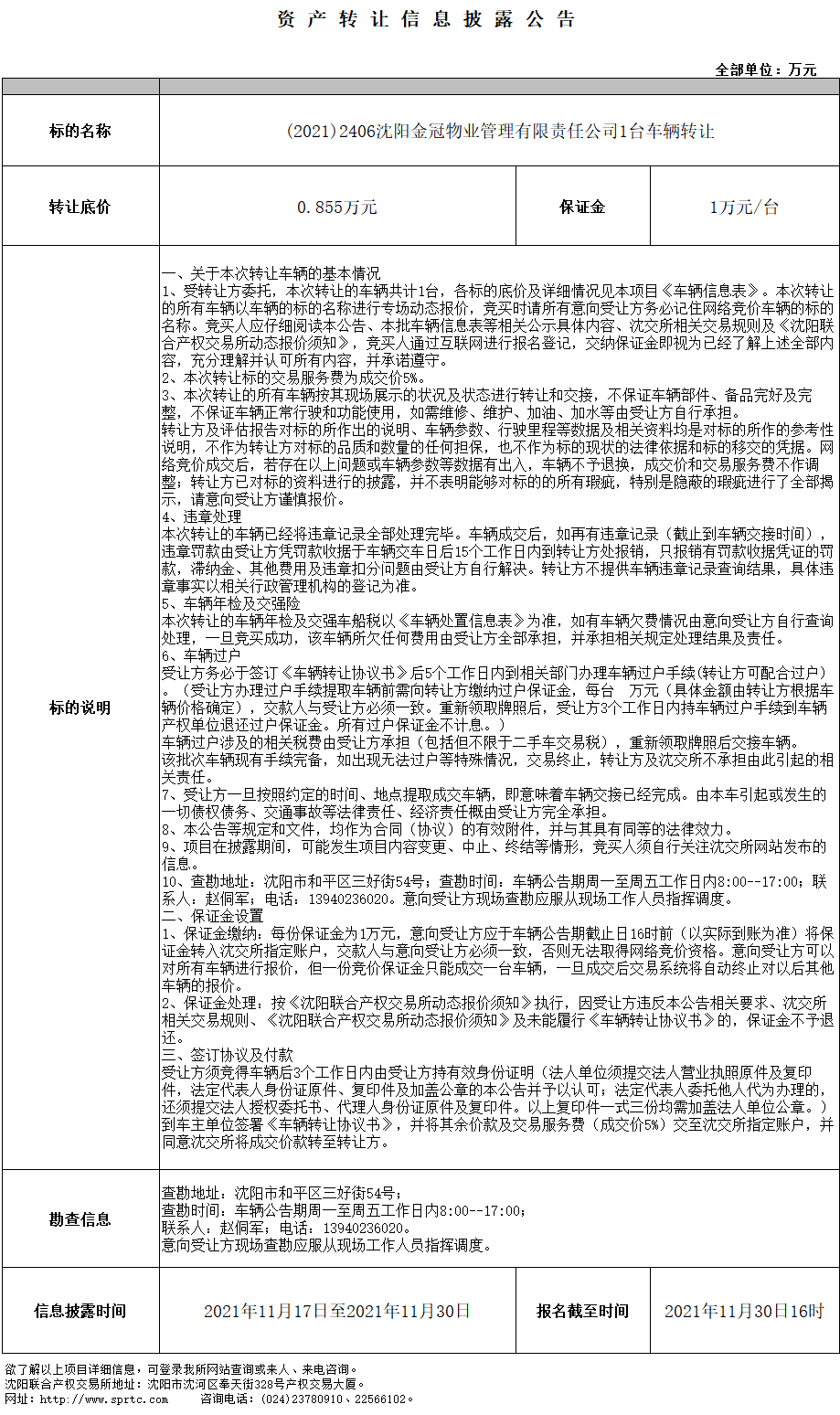 (2021)2406金冠物業(yè)、遼AQL476轉(zhuǎn)讓